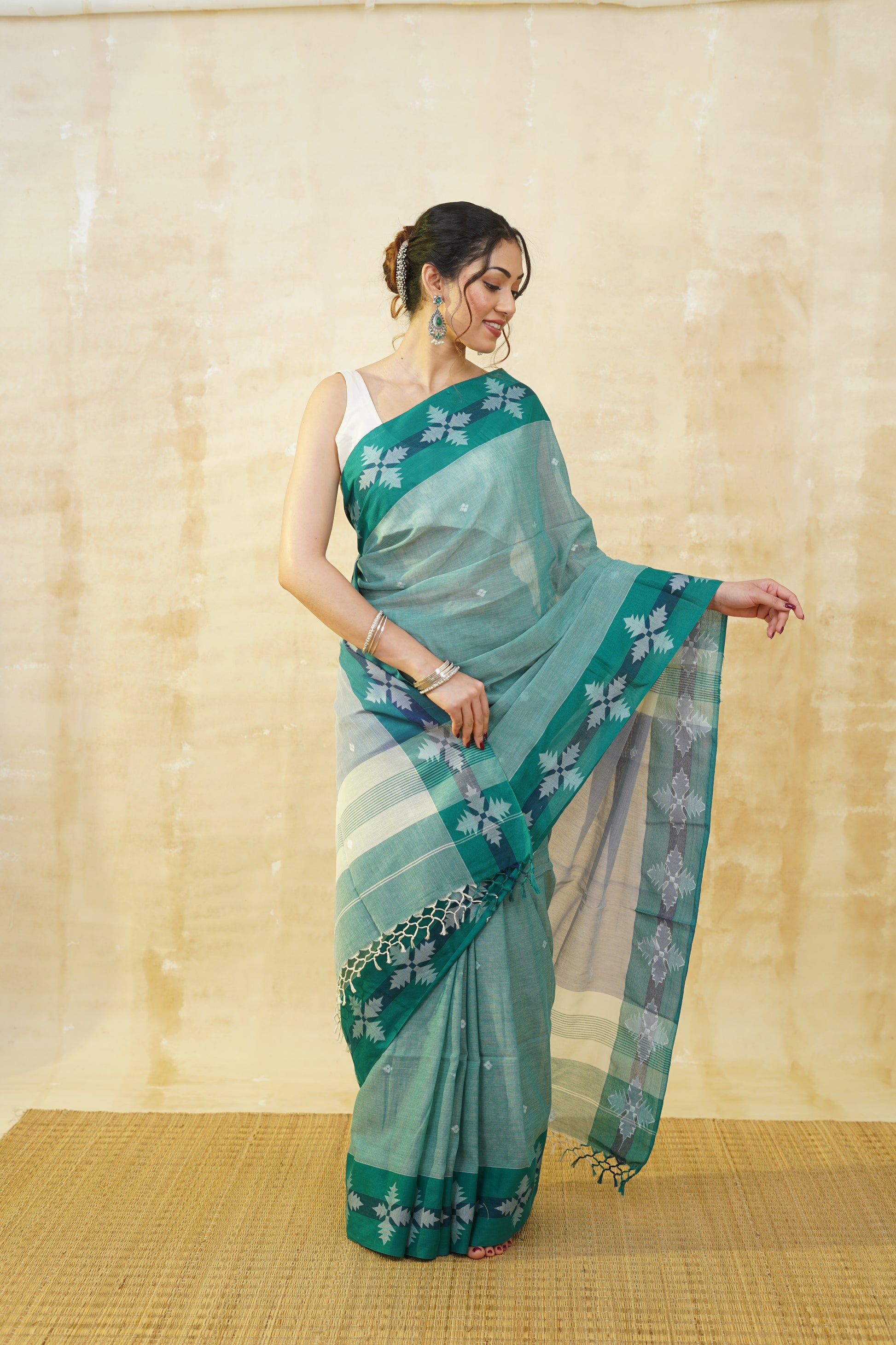Pine Green Pure Cotton Saree
